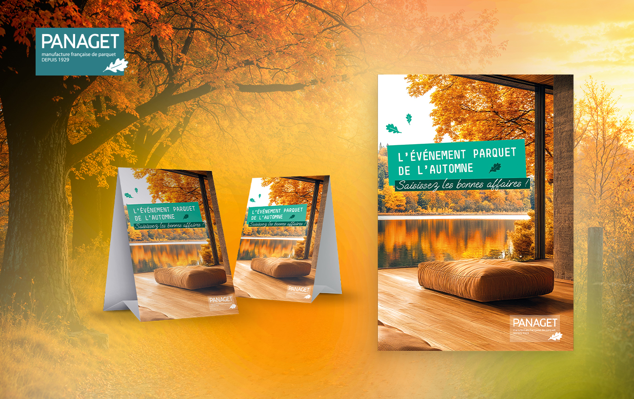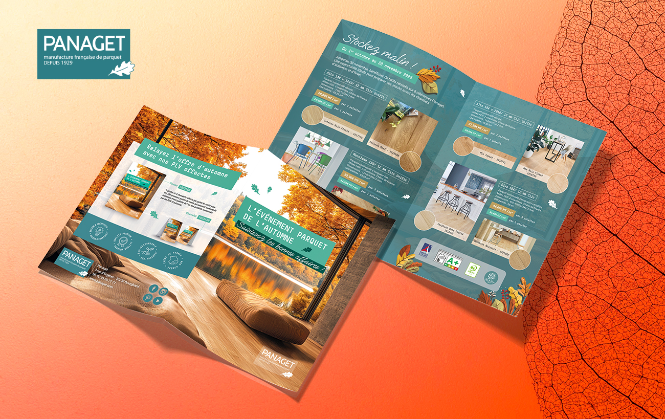 Panaget, fabricant français et acteur majeur du parquet industriel, m’a confié la réalisation de plusieurs supports de communication print à l’occasion d’une opération commerciale sur le thème de l’automne.